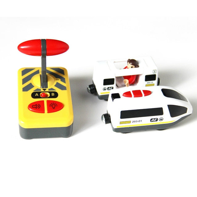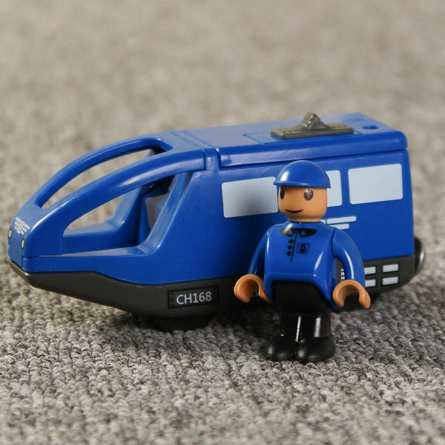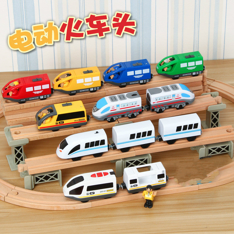 Kids Electric Train Toys Magnetic Slot Diecast Electric Railway with Two Carriages Train Wood Toy FIT T-hmas Wooden Brio Tracks